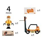 INTERACTIVE PLAY: This 4-piece Fork Lift set, including a worker and cargo, provides endless fun and creative play for your little one. Perfect for expanding your budding engineer’s train collection.