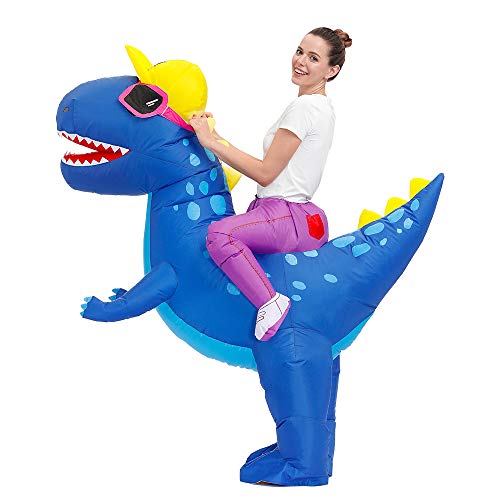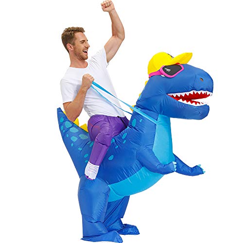 【Product Size】Blue Inflatable Dinosaur Costume (with Sunglasses), Adult Size, L fits height 150-190 cm (5-6.2 feet/59-74 inches).