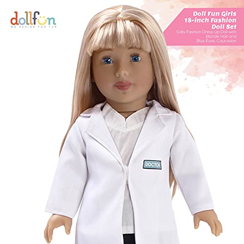 DOLLFUN 18 inch Doll, Fashion – Career Girls – Sally – Doctor in Sydney with Blonde Hair and Blue Eyes, Caucasian, Wearing Styling, Clothes, Shoes and Accessories for Gifts and Role Play