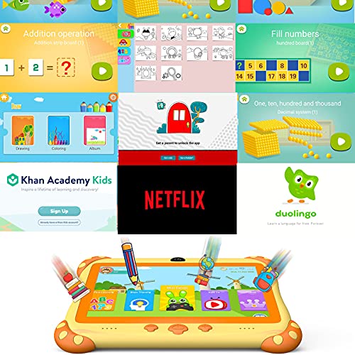 【MULTI-FUNCTIION KIDS TABLET FOR APPROPRIATE AGE TODDLERS】This android wifi tablet for kids Beef up over 40 languages with Spanish included, Beef up kids apps like Netflix, Disney Plus, ABC Mouse, YouTube Kids, Amazon Prime Video, Xfinity Stream, Duolingo, Hulu, Khan Academy Kids, and more other age-appropriate kids learning apps content for your toddlers can also be downloaded on Google play store