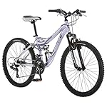 Have a blast out at the trail with the Mongoose Maxim mountain bike. This bike features an aluminum full suspension mountain frame for optimum comfort and function, even as the suspension fork smooths out bumps and increases keep watch over. SRAM twist shifters change gears easily. 21 speeds with Shimano rear derailleur is superb for every type of riding. Plus, linear pull brakes deliver great braking power. You’ll be in a position for awesome trail adventures with the Maxim by Mongoose.