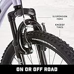 Aluminum full suspension mountain frame maximizes comfort and performance. 24-inch wheels fit riders ages 8 and up, or 4’8” to 5’6”