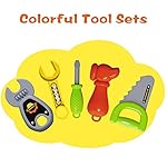 ?【Tools of Different Shapes with Bright Colors】The cute simulation tool kit not only allows toddlers to be informed shapes and color recognition but also allows little boys to experience carpenter games.