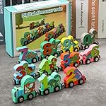 【Play 2023 New Train Sets】Combining two favorites among kids: dinosaurs and trains. Our wooden train sets include an engine and 10 dinosaur train cars, which can be double-sided printed with dinosaur design, one side with numbers 0-9 extra. A fun and entertaining way to develop motor skills, foster imagination and creativity of your little train or dinosaur lover.