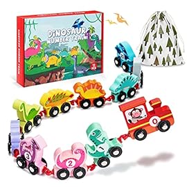 EDUJOY Toddler Toys for 2 Year Old Boy Easter Birthday Gifts, Wooden Dinosaur Train Set Montessori Toys for 2 Year Old, Learning Activities Dinosaur Train for Kids Ages 2-4 Boys Girls Toddler 2-3